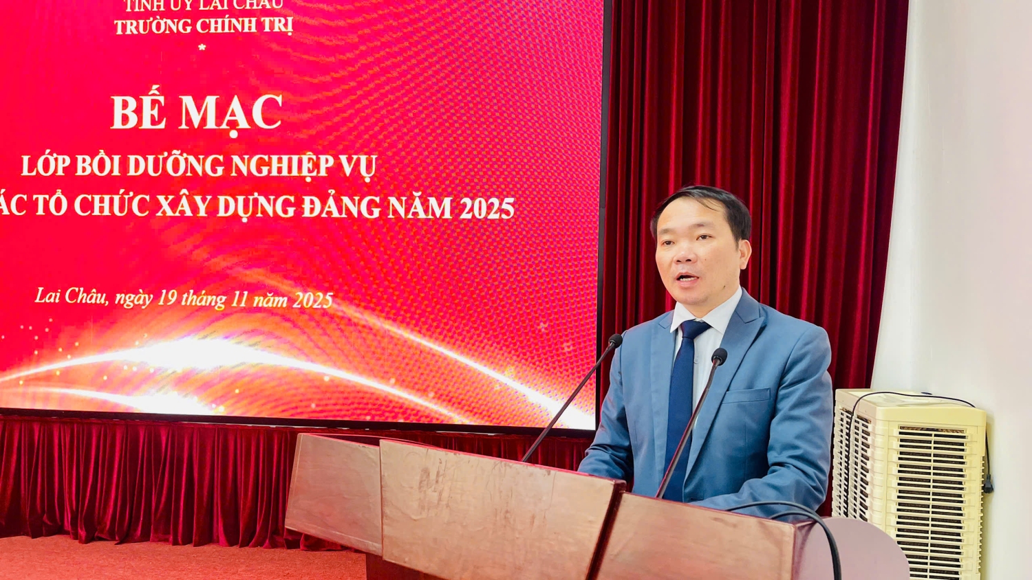Phát biểu bế mạc, đồng chí Lê Chí Công - Hiệu trưởng Trường Chính trị tỉnh nhấn mạnh: Lớp Bồi dưỡng đã hoàn thành đầy đủ mục tiêu, yêu cầu đề ra, góp phần thiết thực nâng cao trình độ, năng lực cho đội ngũ cán bộ làm công tác tổ chức xây dựng Đảng – lực lượng “then chốt của then chốt” trong tham mưu chiến lược cho cấp ủy các cấp về công tác cán bộ và xây dựng Đảng. Kết quả lớp học đã giúp tăng cường sự thống nhất về nhận thức, phương pháp và kỹ năng; hỗ trợ cán bộ cơ sở thực hiện hiệu quả các quy định, quy trình của Đảng trong công tác tổ chức xây dựng Đảng; qua đó đóng góp tích cực vào nhiệm vụ xây dựng hệ thống chính trị tỉnh Lai Châu ngày càng trong sạch, vững mạnh, đáp ứng yêu cầu của Đại hội Đảng bộ tỉnh lần thứ XV và hướng tới Đại hội XIV của Đảng. Đồng chí đề nghị các học viên, trên cơ sở kiến thức đã được trang bị, tiếp tục nghiên cứu, vận dụng sáng tạo vào thực tiễn, nâng cao chất lượng tham mưu và tổ chức thực hiện nhiệm vụ xây dựng Đảng tại cơ quan, đơn vị, địa phương; đóng góp vào sự phát triển chung của tỉnh trong giai đoạn mới.